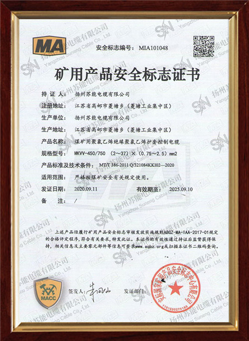 矿用产品安全标志证书